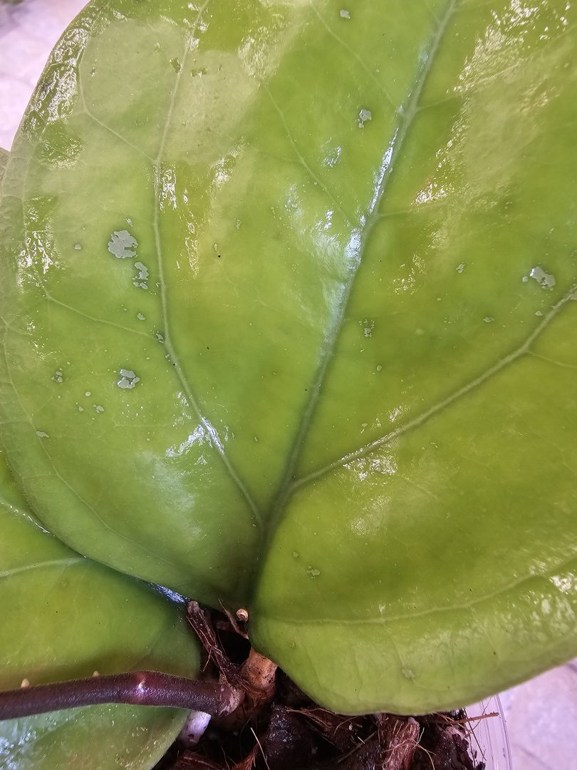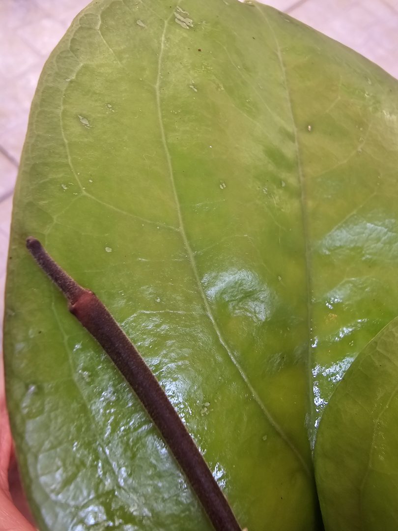 - Hoya de fácil cultivo, folhas grandes, arredondadas e com veios escuros na parte de trás