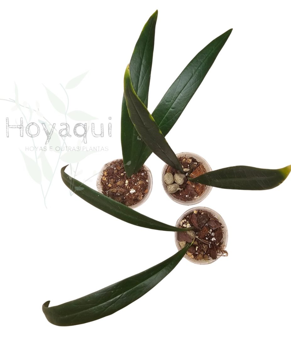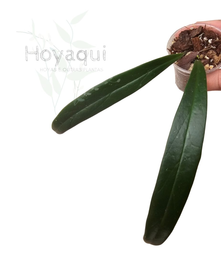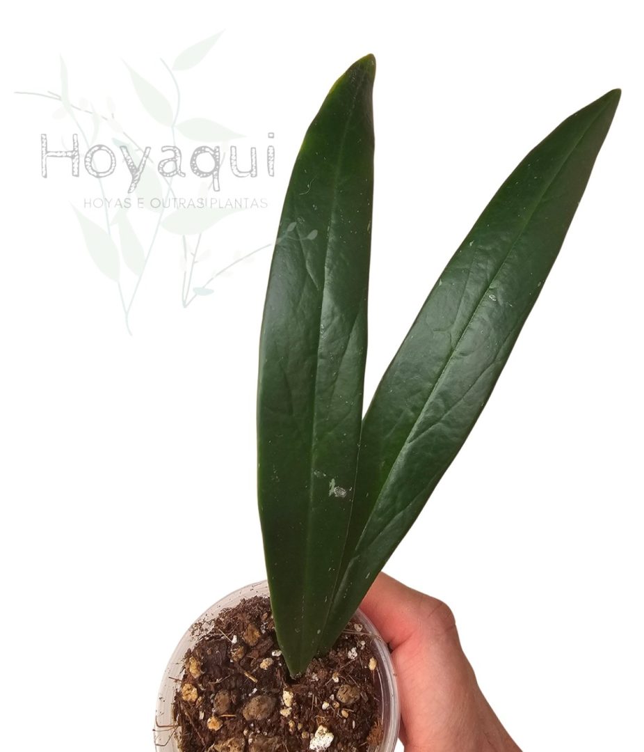 - Hoya de fácil cultivo, folhas compridas e carnudas, verde escuras