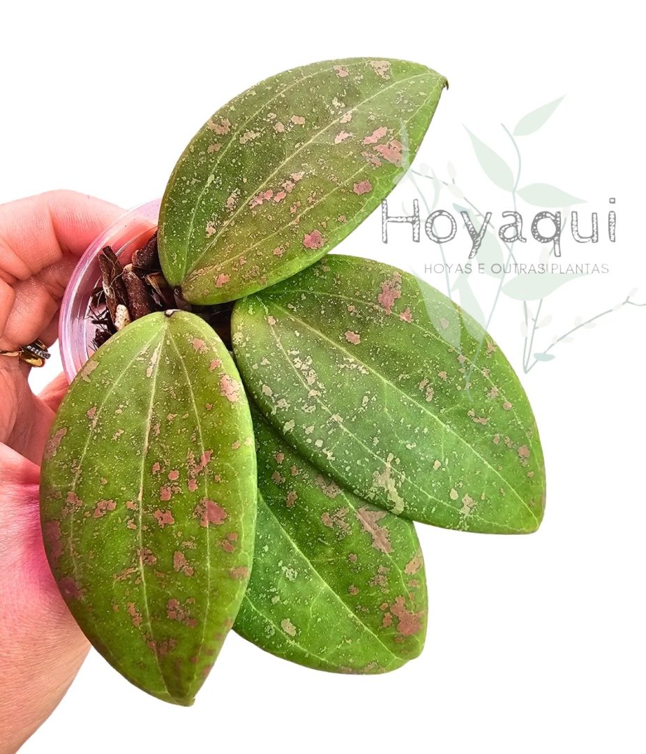 Esta Hoya é maravilhosa! As suas folhas são carnudas, pontiagudas e o que mais se destaca nela é o seu maravilhoso splash rosa (que intensifica com luz mais forte). É de fácil cuidado.